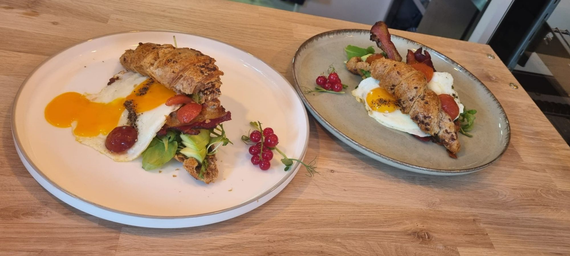 Croissant wytrawny z boczkiem, awokado i jajem